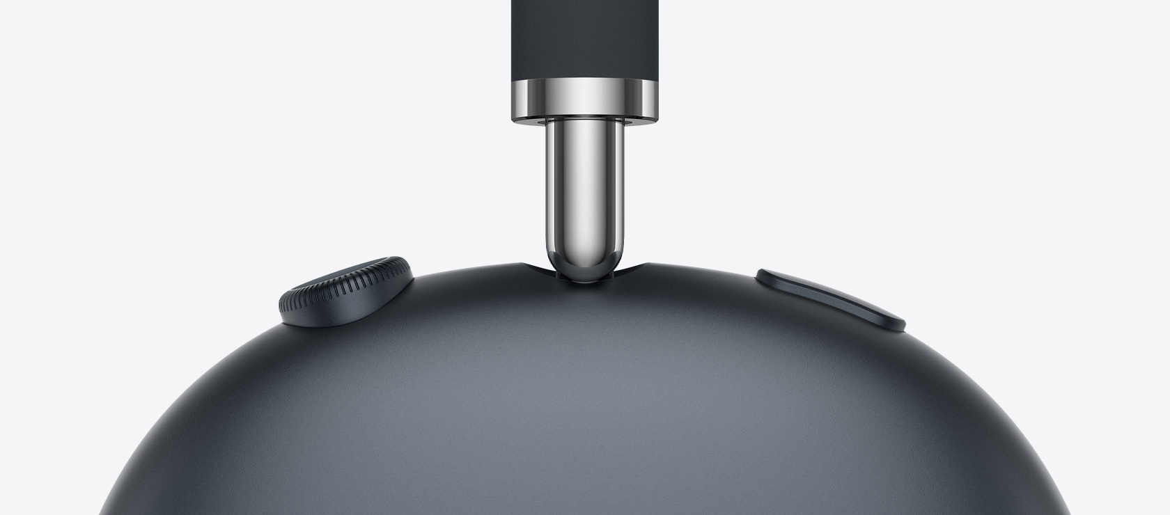 AirPods Max 2 headphones in purple color, top exterior, detail of noise control button and Transparency mode