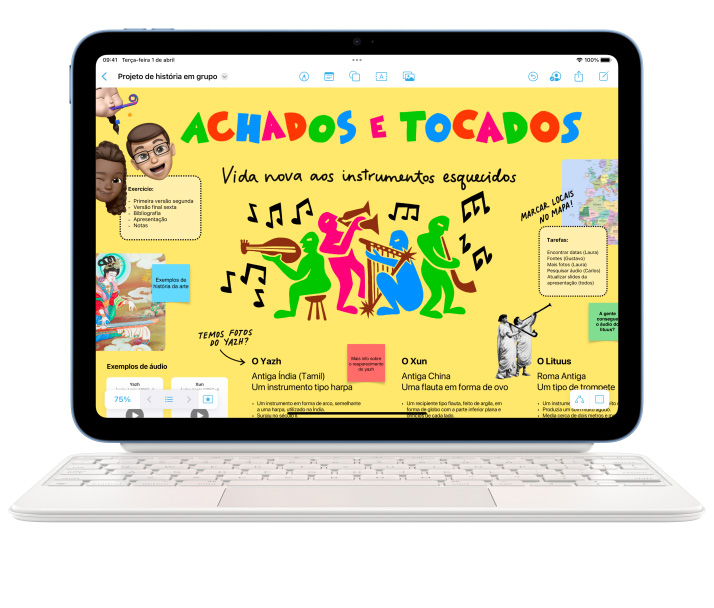 Reorganize planilhas, edite apresentações no Keynote e faça anotações importantes. O Magic Keyboard Folio tem um teclado confortável para digitar e um trackpad para tarefas mais precisas2.