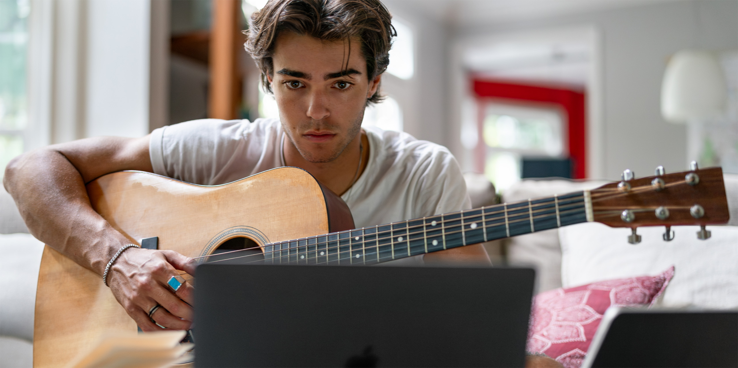 Como cantante y compositor, Max dice que hay que estar preparado para cuando llegue la inspiración. Con Notas de Voz en el iPhone captura al instante ideas para canciones y luego las retoma en su Mac para que cobren vida con distintos arreglos.