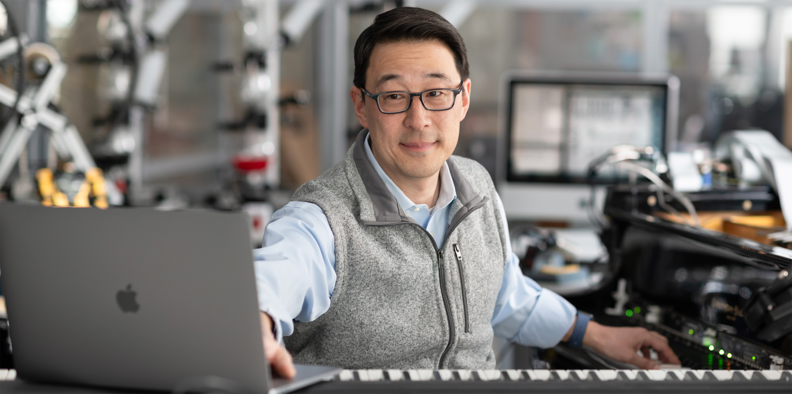El Dr. Kim es ingeniero y músico. Su pasión y sus investigaciones están a medio camino entre las artes escénicas y la tecnología. Y para potenciar su laboratorio de innovación, ha elegido la tecnología de Apple, que lo ayuda a crear un ambiente donde las ideas mágicas nacen de lugares inesperados.