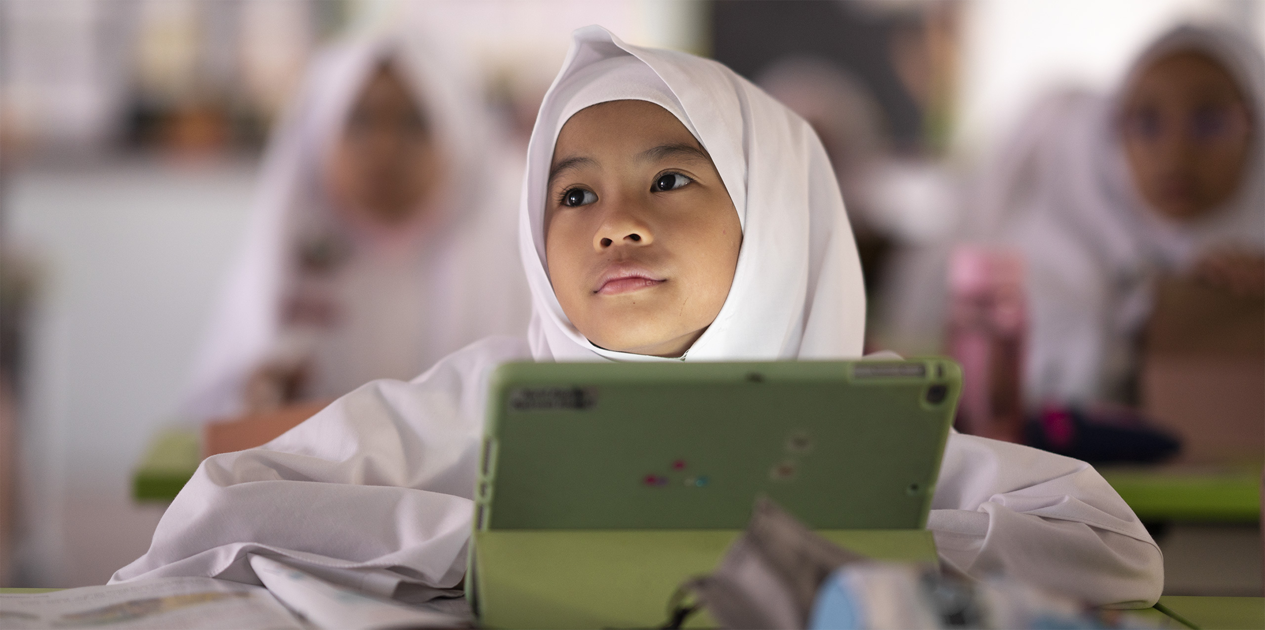 En Madrasah Alsagoff Al‑Arabiah, uno de los colegios islámicos más antiguos de Singapur, el director Syed Mustafa combina tecnología moderna con valores tradicionales para convertir a las estudiantes en líderes capaces de inspirar cambios. Mustafa busca impulsar una cultura basada en la creatividad, solidaridad y colaboración, y está convencido de que la tecnología es un medio para desarrollar y compartir habilidades de pensamiento crítico. Por eso, durante los últimos 10 años ha procurado que a cada estudiante se le asigne un iPad, a cada directivo escolar un Mac y que todos los salones de clase cuenten con un Apple TV.