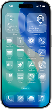 El Liquid Glass trae un nuevo y expresivo diseño con las cualidades ópticas del vidrio que da más fluidez a la pantalla de inicio, la pantalla bloqueada, el Centro de Control, las apps y más.