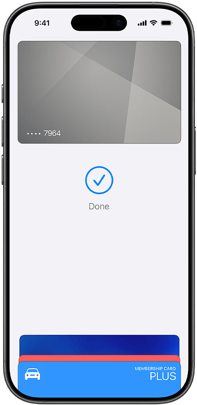 Kreditní nebo debetní kartu přidáš jednoduše tak, že otevřeš aplikaci Peněženka, klepneš na plus a přiložíš vyhovující kartu k zadní straně iPhonu.1 Nebo můžeš kartu přidat ručně – otevři aplikaci Peněženka, klepni na plus a postupuj podle pokynů na obrazovce. Zadané údaje budeš muset ověřit u své banky nebo vydavatele karty. Pokud máš spárované Apple Watch, rovnou dostaneš možnost přidat kartu i do hodinek. A když si pořídíš nový iPhone, svoje karty do něj přeneseš jedním snadným krokem.