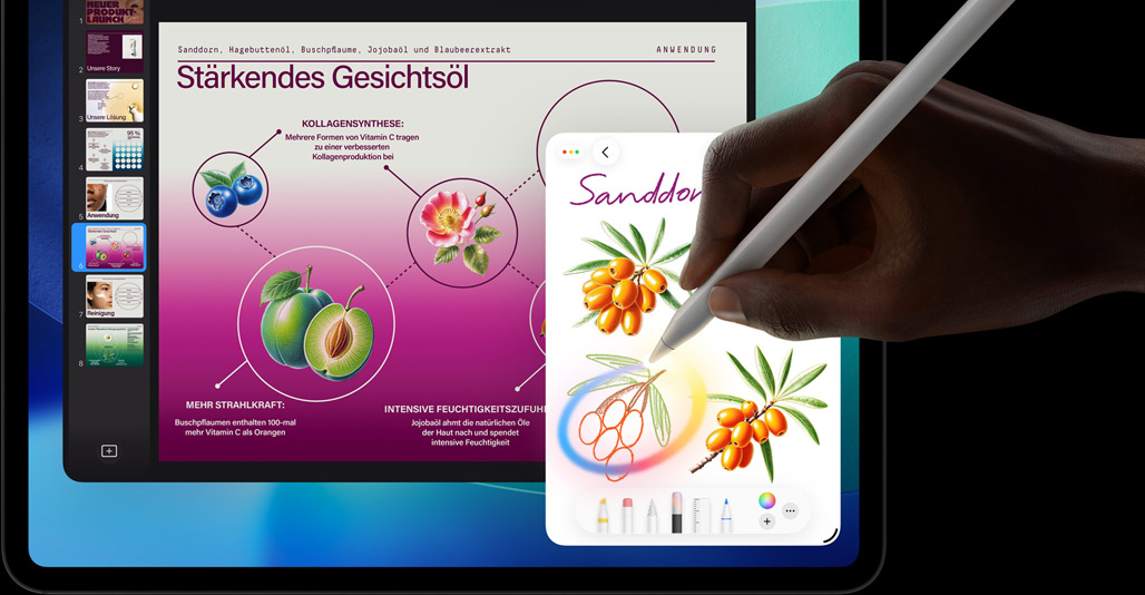 Fortschrittliche Features und komfortables Tippen mit dem Magic Keyboard. Und präzise Kreativität mit dem Apple Pencil Pro.2