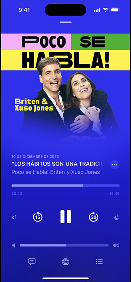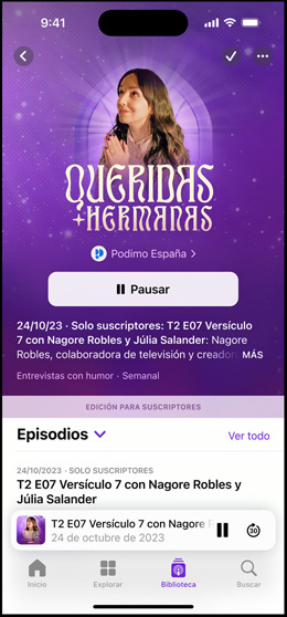 Ahora puedes leer el texto de tus podcasts favoritos mientras los escuchas o ver el texto completo. Esta prestación también te permite buscar una parte concreta de un episodio y tocar cualquier párrafo para saltar a ese punto.3