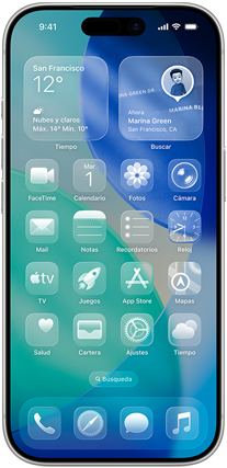 Con las cualidades ópticas del vidrio y una gran sensación de dinamismo, Liquid Glass trae un nuevo lenguaje visual a tu pantalla de bloqueo, pantalla de inicio, Centro de Control, apps y más.