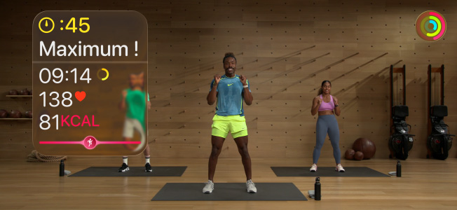 • Non. Vous n’avez besoin que d’un iPhone pour utiliser Fitness+. Avec l’Apple Watch, vous visualisez en plus vos données person­nelles en temps réel à l’écran, comme votre fréquence cardiaque, les calories dépensées et la progression de vos trois anneaux Activité, lors de chaque séance.