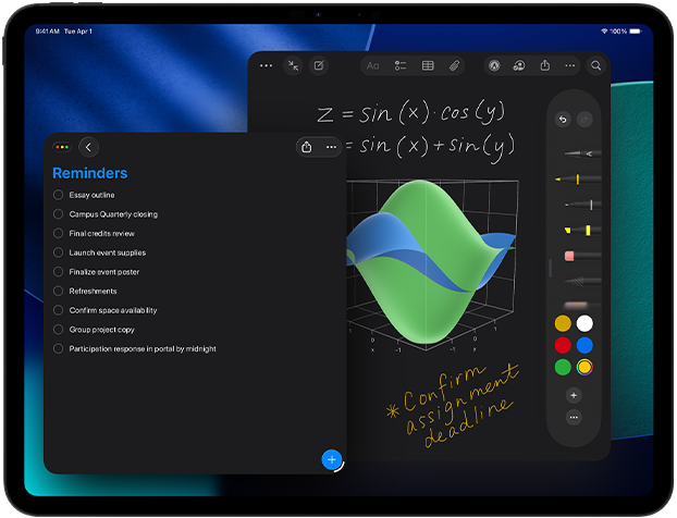 iPadOS 26 memperkenalkan desain baru yang menawan dengan Liquid Glass dan terobosan penyempurnaan yang menempatkan produktivitas iPad Pro di level selanjutnya. Sistem jendela intuitif yang didesain ulang memberi Anda fleksibilitas dan kuasa yang lebih besar. Jalankan aplikasi pro, mainkan game berperforma tinggi, dan kerjakan proyek kreatif dalam ukuran apa pun dengan pengalaman sentuh yang intuitif.