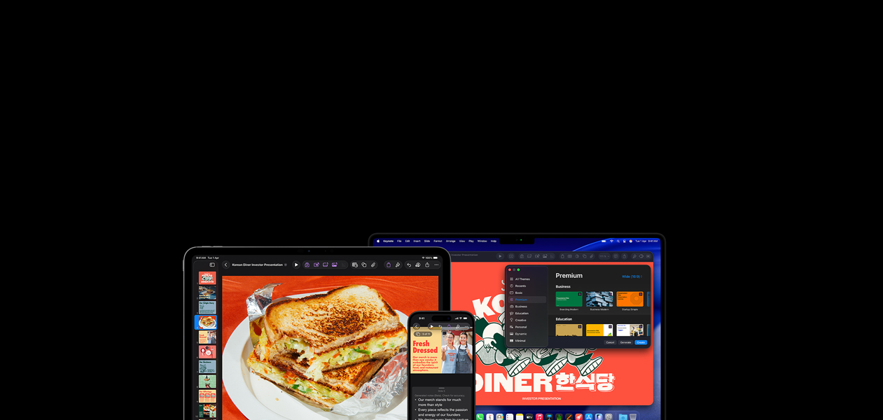 Build memorable presentations and collaborate in real time with intuitive tools and effects. As an Apple Creator Studio subscriber, you get premium content and powerful intelligence.
