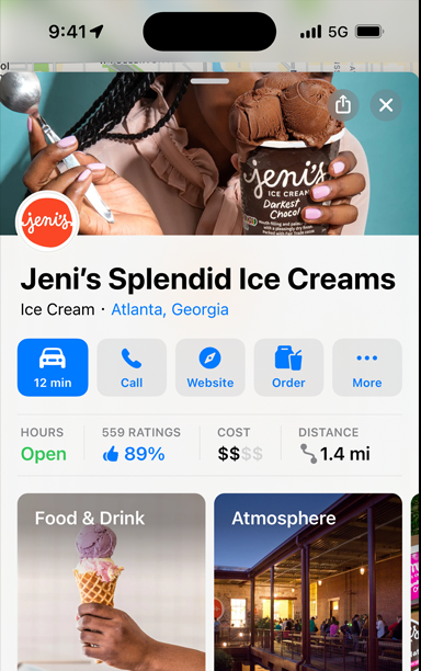 Grazie a Apple Business Connect, trovare la tua attività con Mappe di Apple è semplicissimo. E sei tu a decidere come presentarla. Crea una scheda con indicazioni stradali, informazioni di contatto e azioni integrate: potranno accedervi tutte le persone che usano i dispositivi Apple e le app incluse, in qualsiasi parte del mondo.