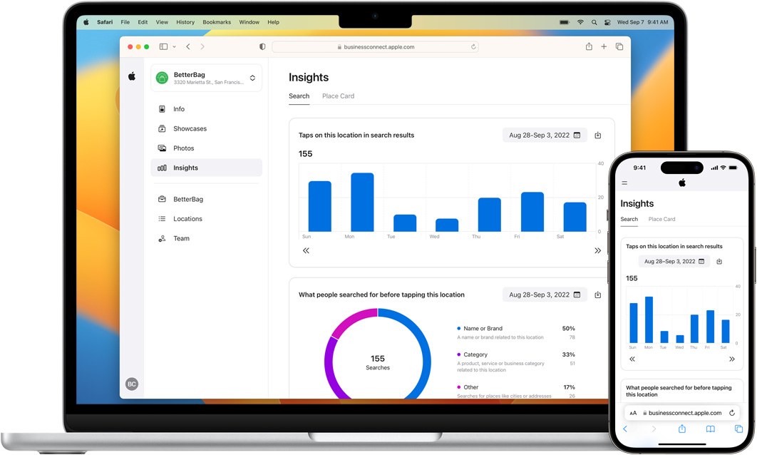 Apple Business Connect ti aiuta a creare e tenere aggiornata la scheda della tua attività. Aggiungi foto, loghi, immagini di intestazione, orari e altro.