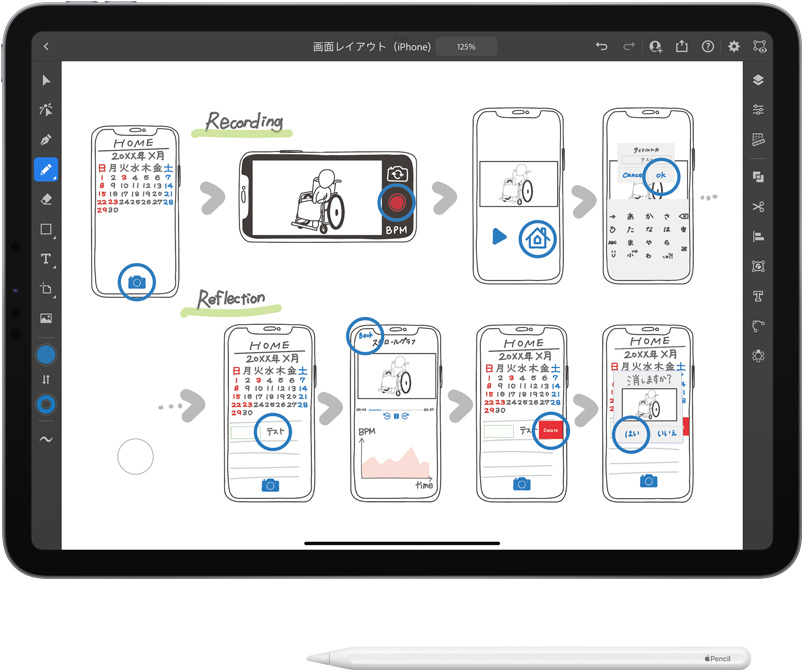 iPad Pro. Con iPad, Apple Pencil e Adobe Illustrator, il professor Iimura e la sua classe hanno trasformato spunti e idee in un vero storyboard per creare un’app di accessibilità che aiuti chi insegna a usare la comunicazione non verbale.