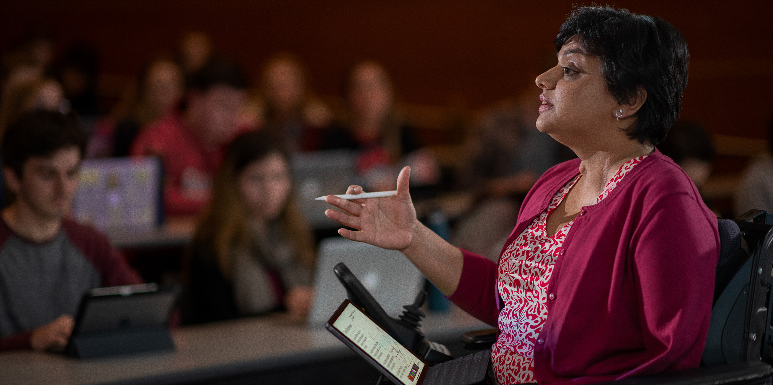 E la tecnologia Apple trasforma la sua aula in un vero laboratorio di idee. Gopalakrishnan usa le funzioni integrate per l’accessibilità di iPad Pro, come Dettatura e AssistiveTouch, per illustrare i contenuti in tempo reale, e con Apple Pencil ha uno strumento interattivo completo per fare schizzi, disegnare e annotare documenti.