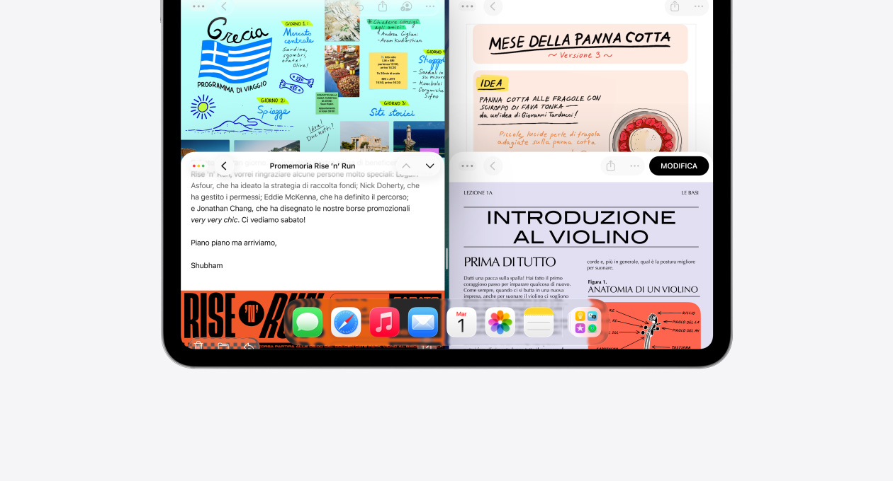 Per spostare le finestre a sinistra o a destra ti basta un semplice gesto. E ora puoi anche dividere lo schermo del tuo iPad in tre o in quattro parti.