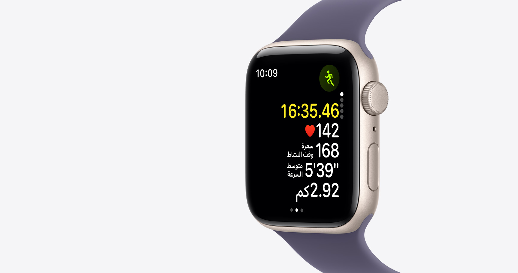 Apple Watch SE 3 هي رفيق دربك المثالي، فهي تستخدم نظام GPS مدمجاً ومستشعرات متطورة لتساعدك على تتبّع المسافة التي اجتزتها وسرعتك ومعدل نبض قلبك. وتوفر لك أيضاً كل القياسات التي قد تحتاج إليها لتُبقي أهداف لياقتك على المسار الصحيح.