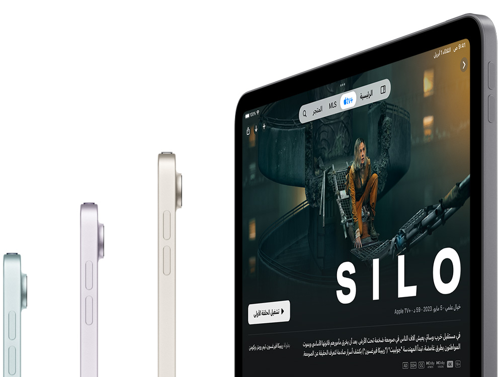 اختر ما يناسبك من بين iPad Air‏ مقاس 11 إنش ومقاس 13 إنش، يتألق كلاهما بشاشة ريتنا ليكويد خلابة فائقة الوضوح تحول كل ما في بالك إلى واقع ملموس أمامك. وتمنحك تجربة مشاهدة مذهلة بروعتها ومدهشة بسرعة استجابتها ورائعة بدقة ألوانها.