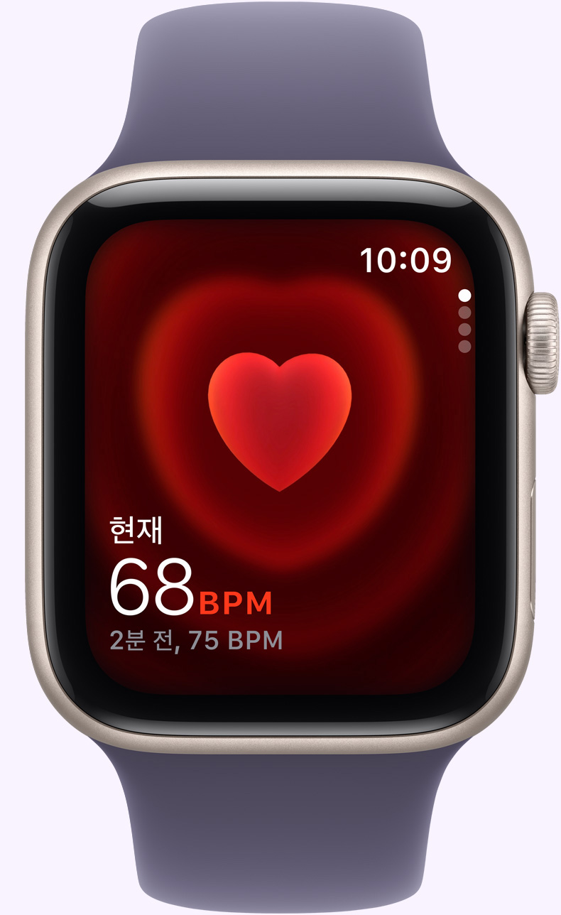 ‘심박수’ 앱으로 언제든 자신의 심박수를 확인할 수 있고, 너무 높거나 낮은 심박수가 감지되면 알림을 받을 수도 있습니다.