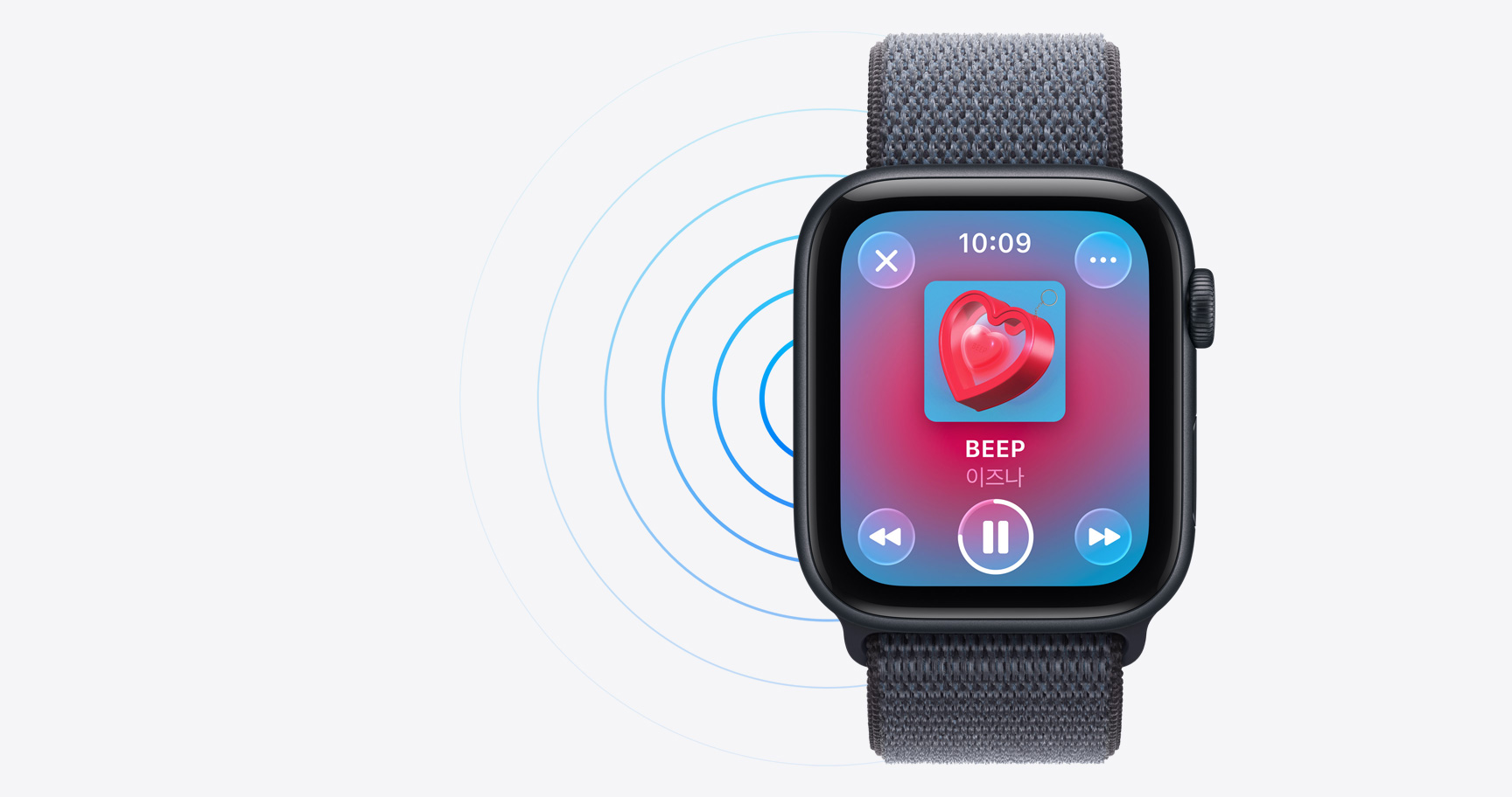 SE 3는 AirPods과 매끄럽게 연결되기 때문에 양손을 자유롭게 쓰면서 음악 또는 팟캐스트를 들을 수 있습니다.6 AirPods이 곁에 없는 경우에도 시계 스피커를 통해 미디어를 재생할 수 있죠.