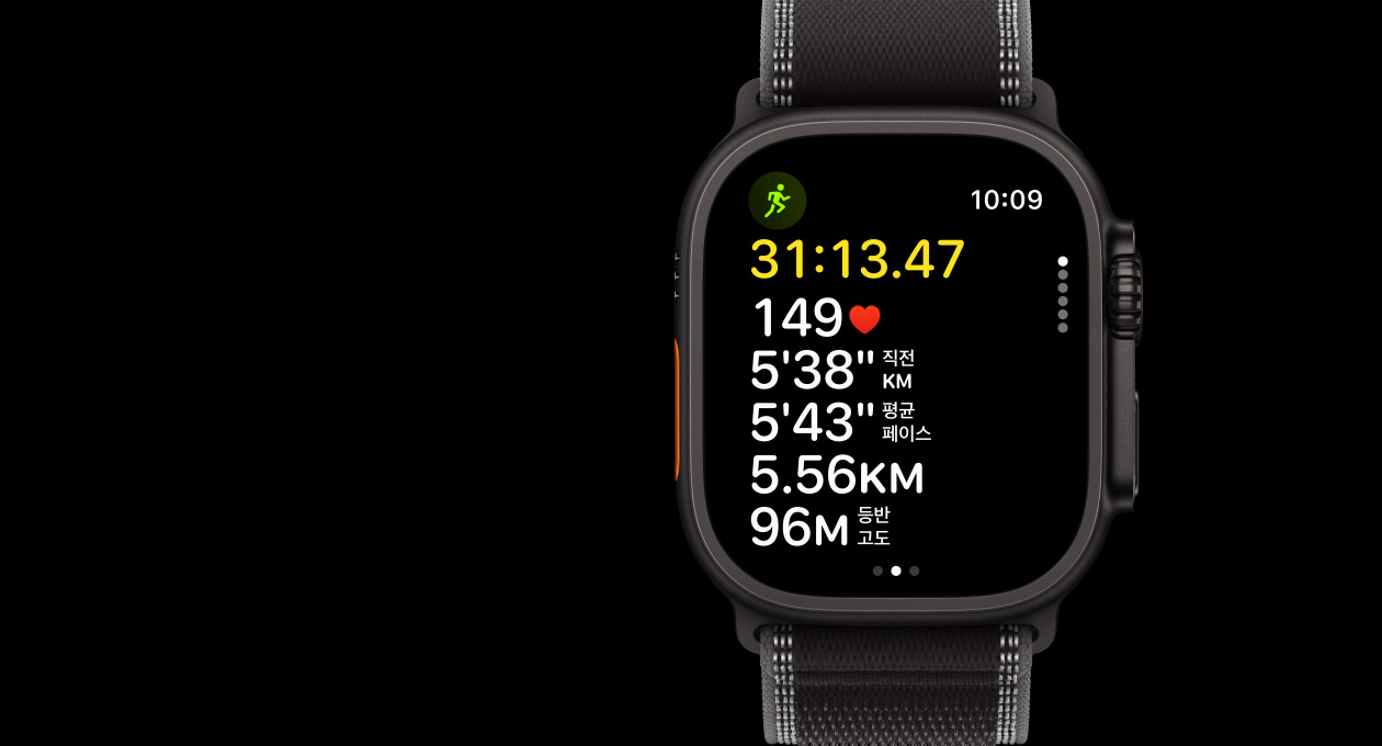 ‘운동’ 앱을 통해 언제나 더욱 알차게 달릴 수 있습니다. 달리기 페이스를 설정하고, 경로에서 세운 마지막 기록이나 최고 기록 경신을 목표로 설정하거나, 트랙에서의 정확한 랩 시간을 확인할 수도 있죠.