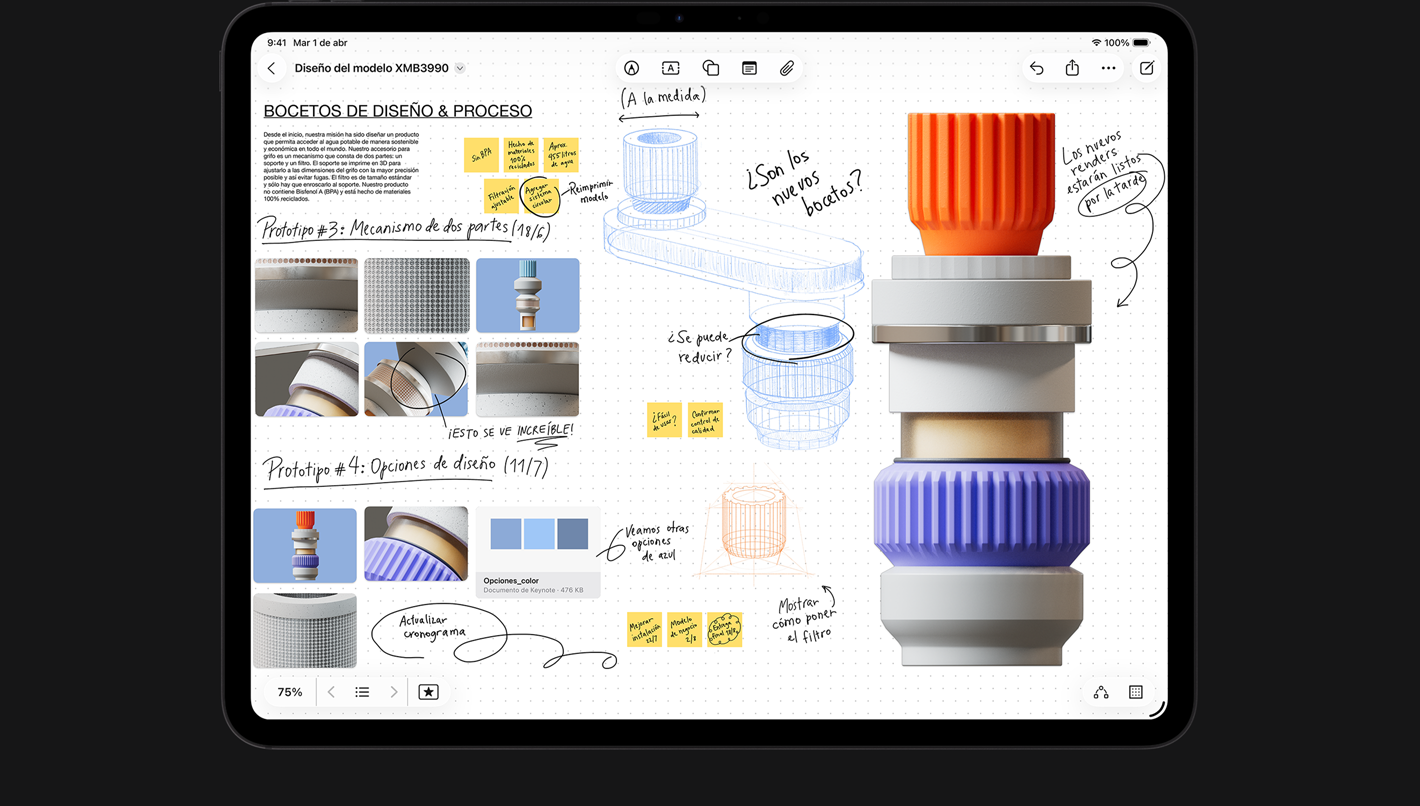 Con el Apple Pencil, la forma en que dibujas, pintas, escribes y tomas notas es intuitiva y precisa. Sentirás que usarlo es mágico gracias a su increíble precisión, baja latencia, sensibilidad a la inclinación y tecnología de detección de palma.