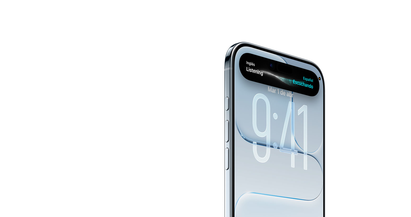iPhone Air, parte frontal, parte lateral, diseño todo pantalla, Dynamic Island en la parte superior, botón lateral, botón de Control de la Cámara