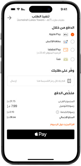 في التطبيقات وعلى الإنترنت. استخدم Apple Pay للشراء في سفاري على iPhone أو iPad أو Mac، وادفع بمجرد لمسة أو لمحة من دون الحاجة إلى تعبئة نماذج طويلة عند الاستعداد للدفع. يمكنك أيضاً استعمال Apple Pay للاشتراك في خدمات مثل Apple Music و+Apple TV، وشراء التطبيقات والألعاب على App Store، وترقية مساحة تخزين iCloud.