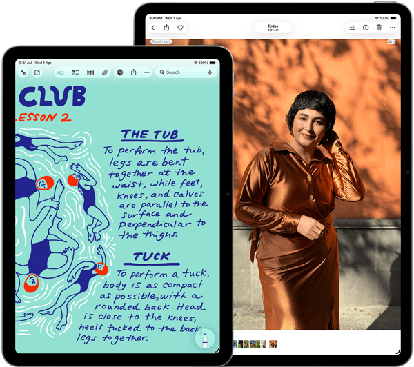 You can choose between an 11-inch and a 13-inch iPad Air, each with a gorgeous, high-resolution Liquid Retina display that brings everything you do to life. Both displays deliver a brilliant, responsive, and color-accurate viewing experience.