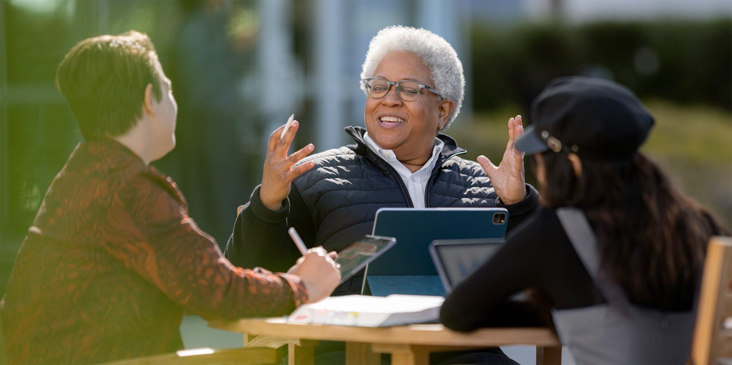 Med hjälp av iPad Pro och Apple Pencil leder hen masterstudenter genom en resa för att utforska sig själva och göra experiment som förenar meningsfulla, personliga berättelser med digital konst. Ajuan Mance använder apparna Notability och Adobe på iPad för att lära studenterna att skapa starka berättelser, 2D- och 3D-animeringar och illustrationer av karaktärer för intressanta webbserier som uttrycker mångfald och blir en del av deras framtida portfolio.