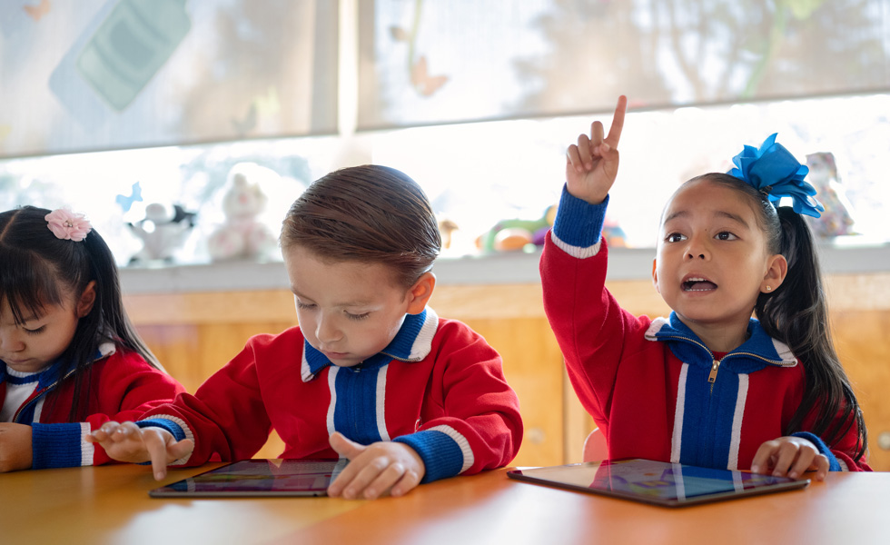 โรงเรียนนำ iPad มาใช้กับนักเรียนชั้นอนุบาล เพื่อช่วยส่งเสริมการหัดอ่านและเขียนด้วยแอป อย่าง Smile and Learn "เด็กเล็กจะมีความสงสัยและอยากเรียนรู้ไปหมด" Liliana Pescador คุณครูชั้นอนุบาล กล่าว "พวกเขาจะเดินเข้ามาหยิบอุปกรณ์ไปดูและสำรวจ แล้วยังถือไปทั่ว เราอยาก ให้นักเรียนเริ่มต้นใช้เครื่องมือเหล่านี้ตั้งแต่อายุน้อยๆ ซึ่งเด็กที่เริ่มอ่านและเขียนได้ตอนนี้ก็สามารถเขียนประโยคสั้นๆ บน iPad ได้แล้ว"