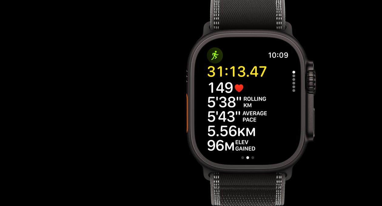 Ultra 3 has a Hiking workout that lets you track your pace, distance, elevation gain and calories burned. See how high you’ve climbed in real time, and get your total elevation gain when you’re finished. Sky’s the limit.